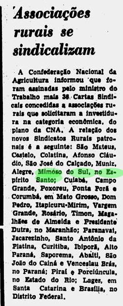 1966. Sindicato Rural em Mimoso do Sul. Correio da Manha.