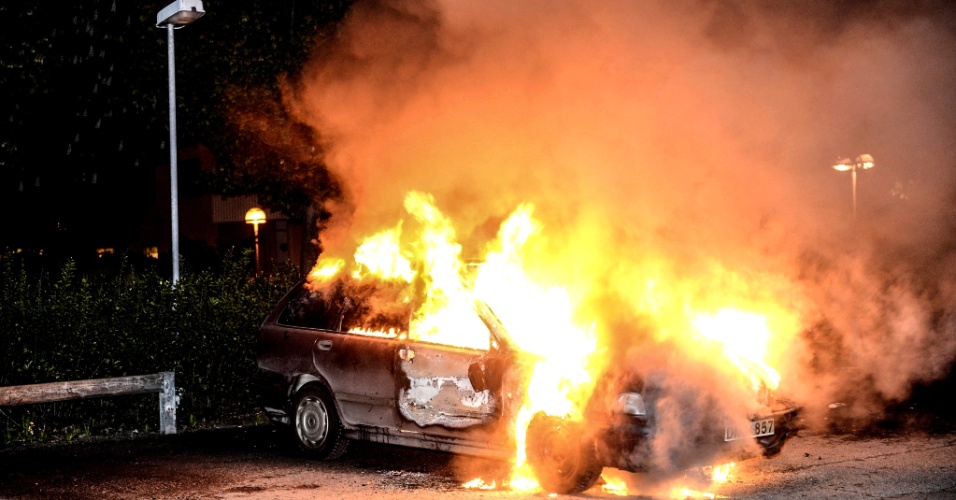 Centenas de jovens da periferia de Estocolmo, capital da Suécia, incendiaram carros, destruíram vitrines de lojas e incendiaram uma escola, uma enfermaria e um centro cultural no quarto e mais violento dia de protestos contra a ação da polícia.
