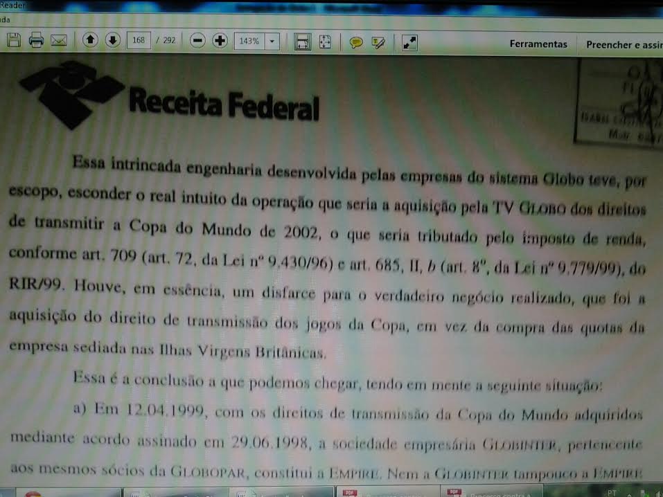 Oito anos e duas Copas depois, o auditor fiscal Alberto Sodré Zile, da Delegacia da Receita Federal do Rio de Janeiro, encerrou uma investigação sobre a aquisição dos direitos de transmissão pela Globo e concluiu: